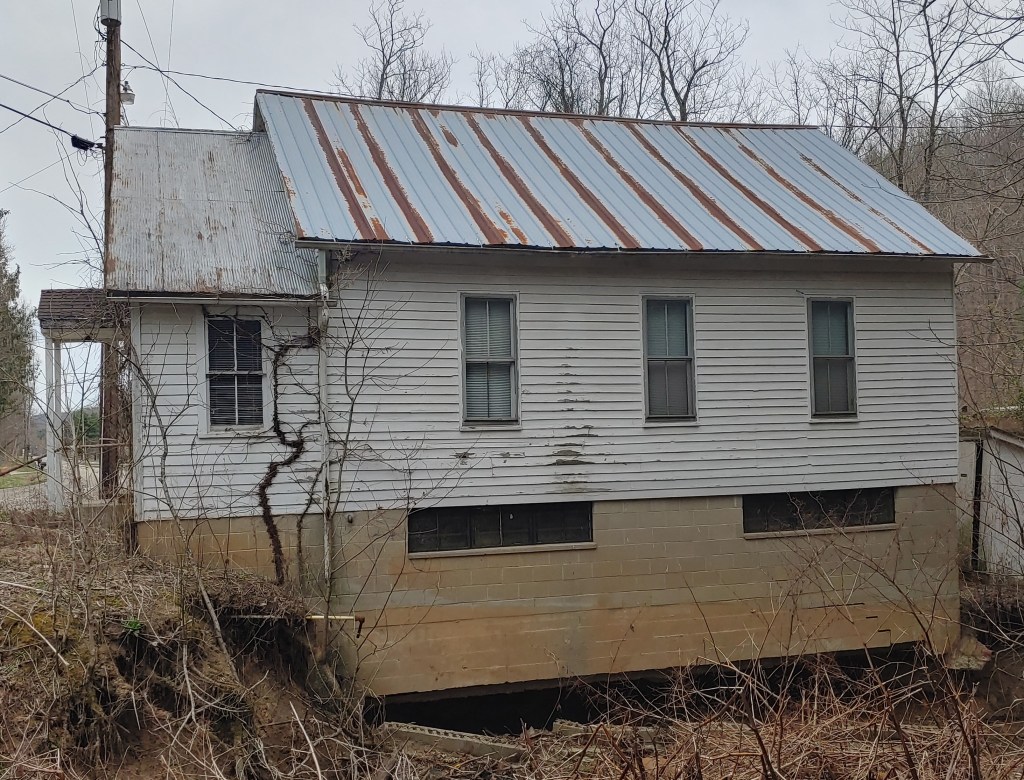 This church was built on a bend in a creek. There is not much land between the road and the creek – but the church is tucked neatly into place. Unfortunately, over time, heavy rains and the increased currents that come with them have worn away against the curve and have washed out a significant portion of the buildings foundation. There is no saving this structure. One day it will cave into the creek below, an even lesser image of what used to be.